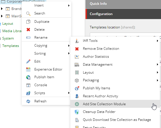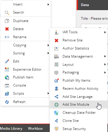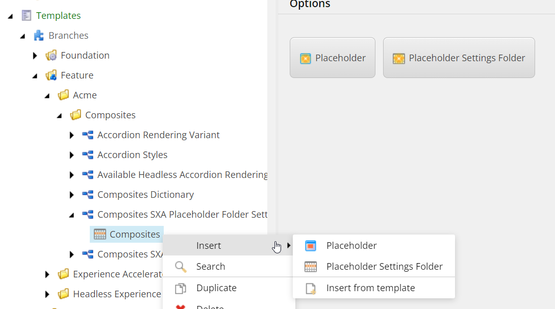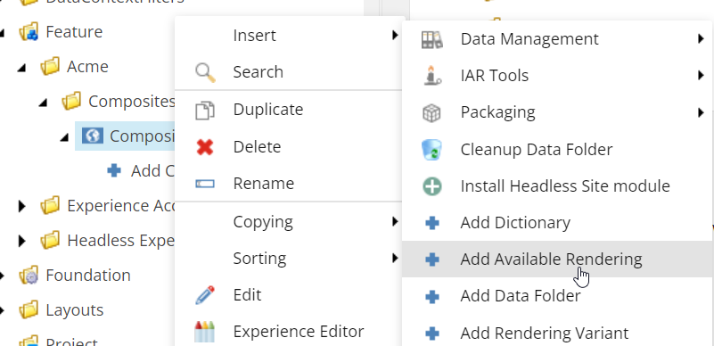 To create an Available rendering for a component, right-click on the site setup item and choose Add Available Rendering: