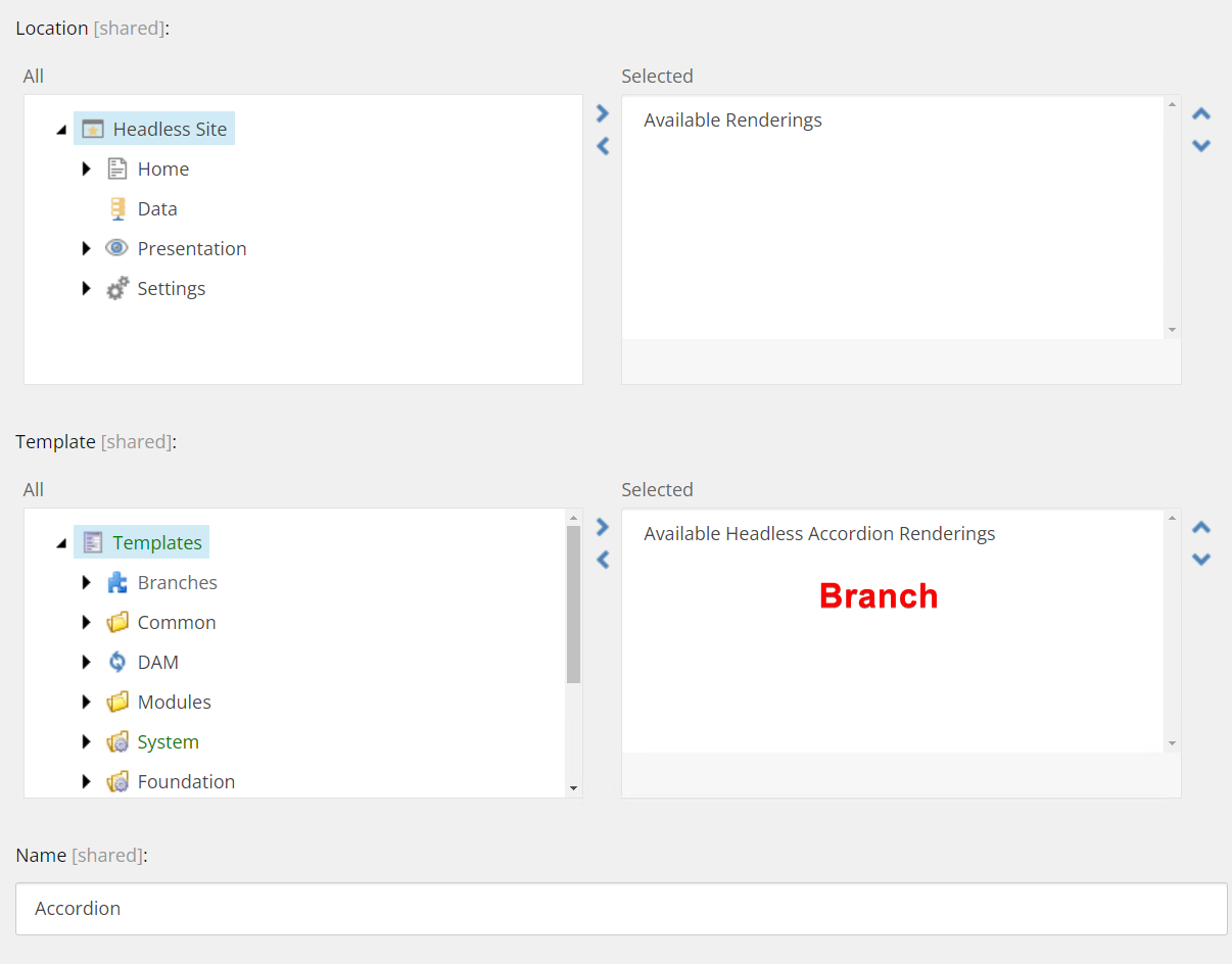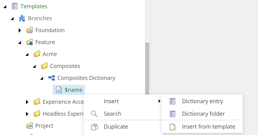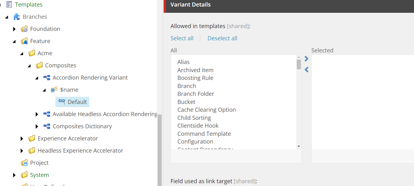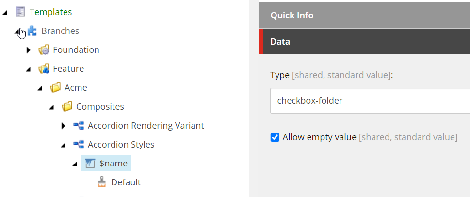 Navigate to the created branch template, here you can configure the default variant or add additional variants: