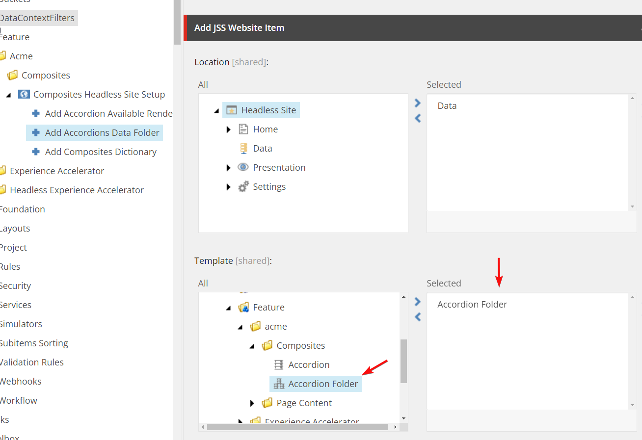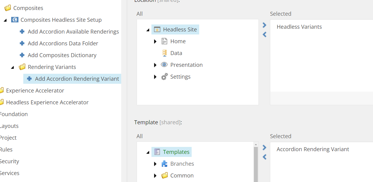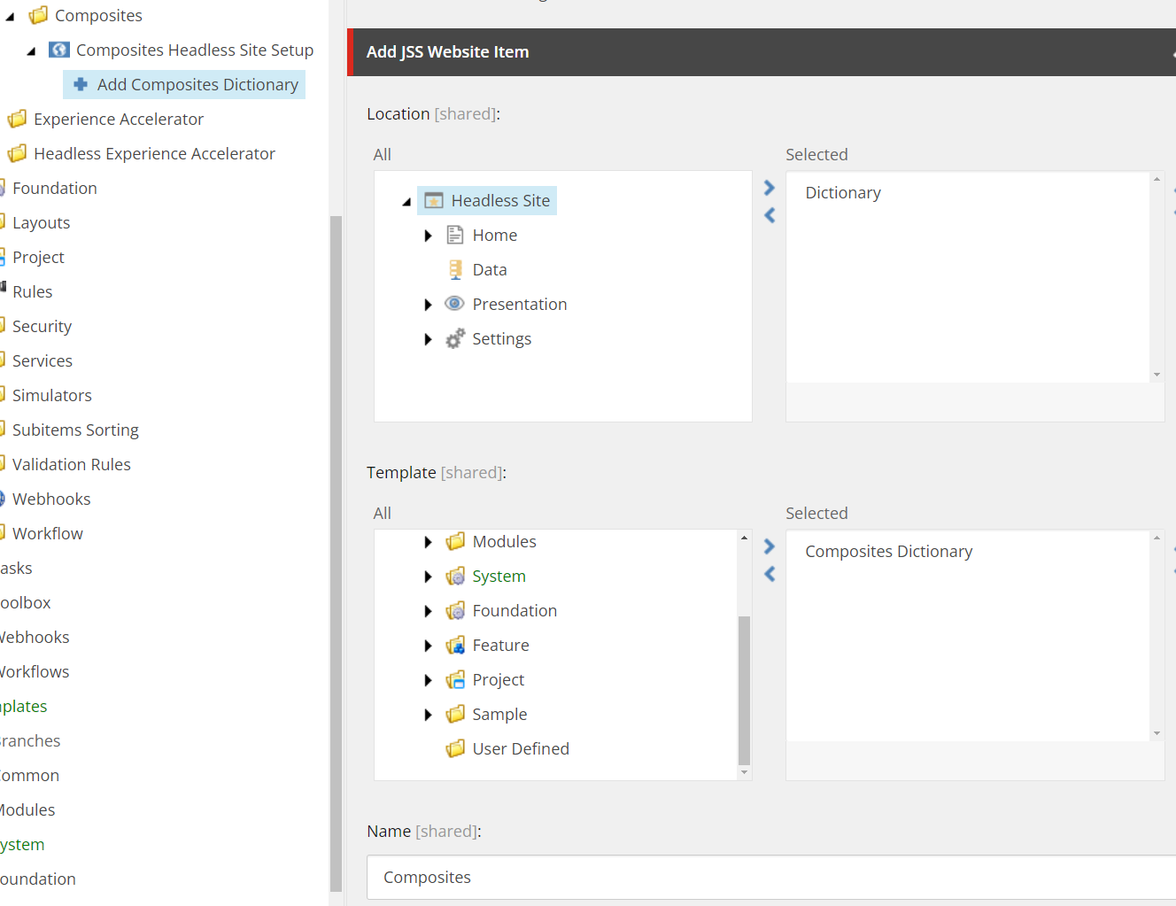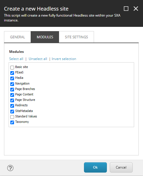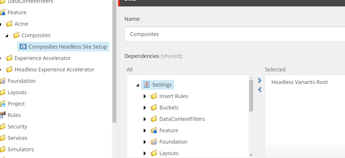 - Site Setup item will have Headless variants root preselected as a dependency.