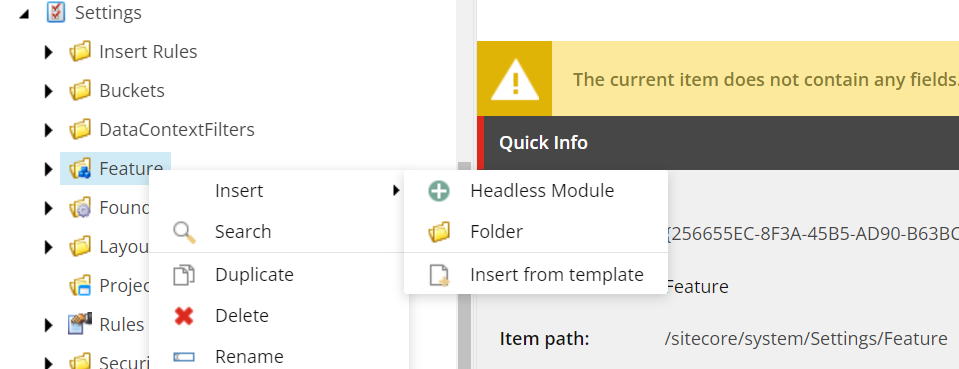 This is available when you select a folder under /sitecore/system/Settings/Feature :