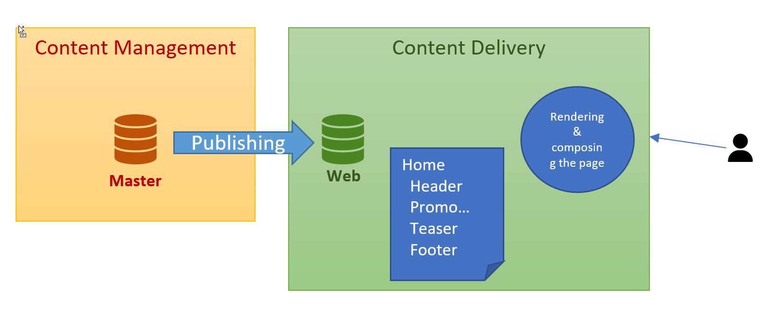 In Experience Platform, publishing basically copies the items from the master database to the Web Database. When the requests come to the content delivery server, the content of the page will be generated based on the presentation details, and the data sources that are in the web database.